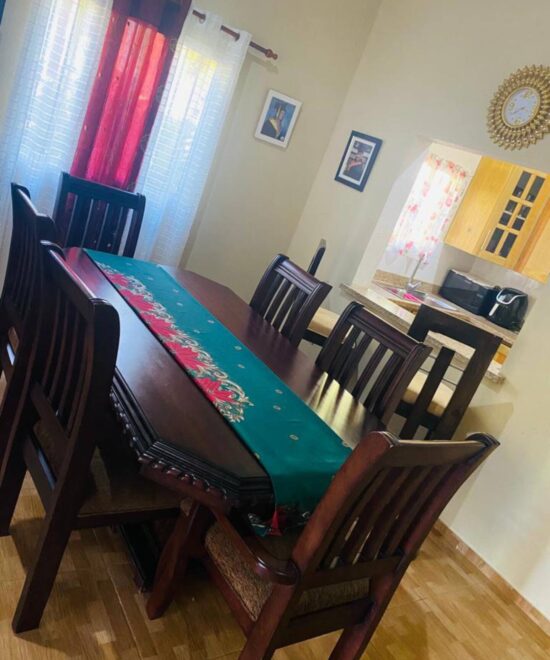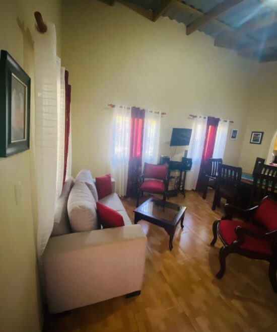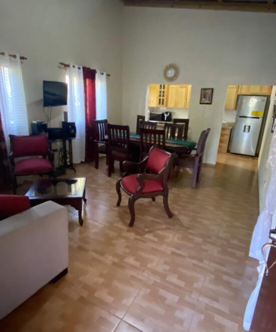 A beautiful quiet house to enjoy the surrounding nature. The house is large and very nice with a large living space and a beautiful outdoor space, fully secure. Clean, comfortable, well appointed bedding. The neighborhood is quiet and the neighbors are very friendly. Great location for starting point to Pico Duarte (with a guide) or just enjoy the Rio and hikes. We had no car and had no trouble coming by public transport from Jarabacoa. Small grocery store about 10 min walk and downtown Manabao a little further walk (40 min). Extremely responsive, available and very helpful host. Really, if the silence of nature and the crowing of the morning rooster don’t bother you so you won’t regret your stay here. I highly recommend it.